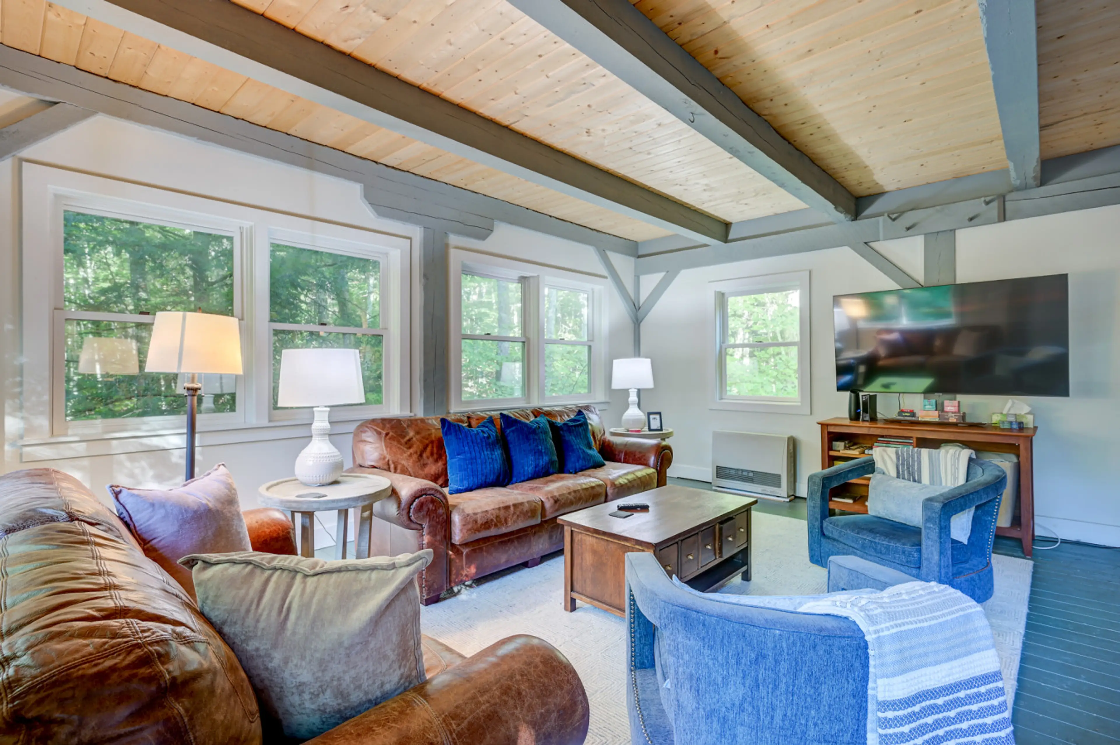 Tucked in the trees with views of a rushing brook, this place has room for your whole crew and then some. Two living spaces, a big ol’ kitchen, and a massive game room with all the fun stuff. Outside? We’re talkin’ hot tub, and chill spots right by the brook—go ahead, dip your toes if you're feelin'...