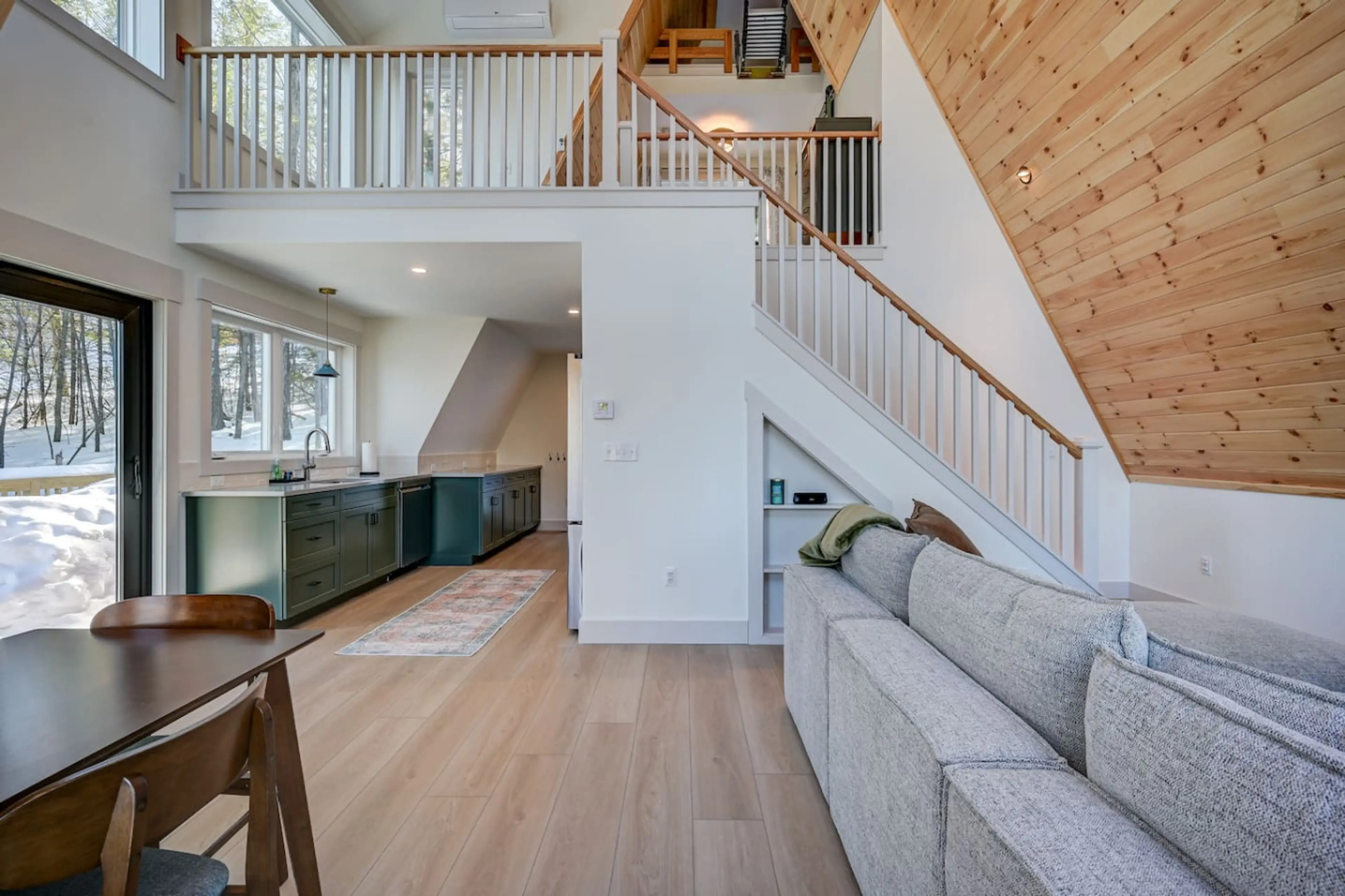 The Outlook is a brand new custom-built A-Frame in Conway, NH, blending modern design with classic mountain charm. Soaring pine ceilings and oversized windows fill the open-concept kitchen, dining, and living area with natural light. Suite 5 features a queen bed with en suite bath and a connected lo...